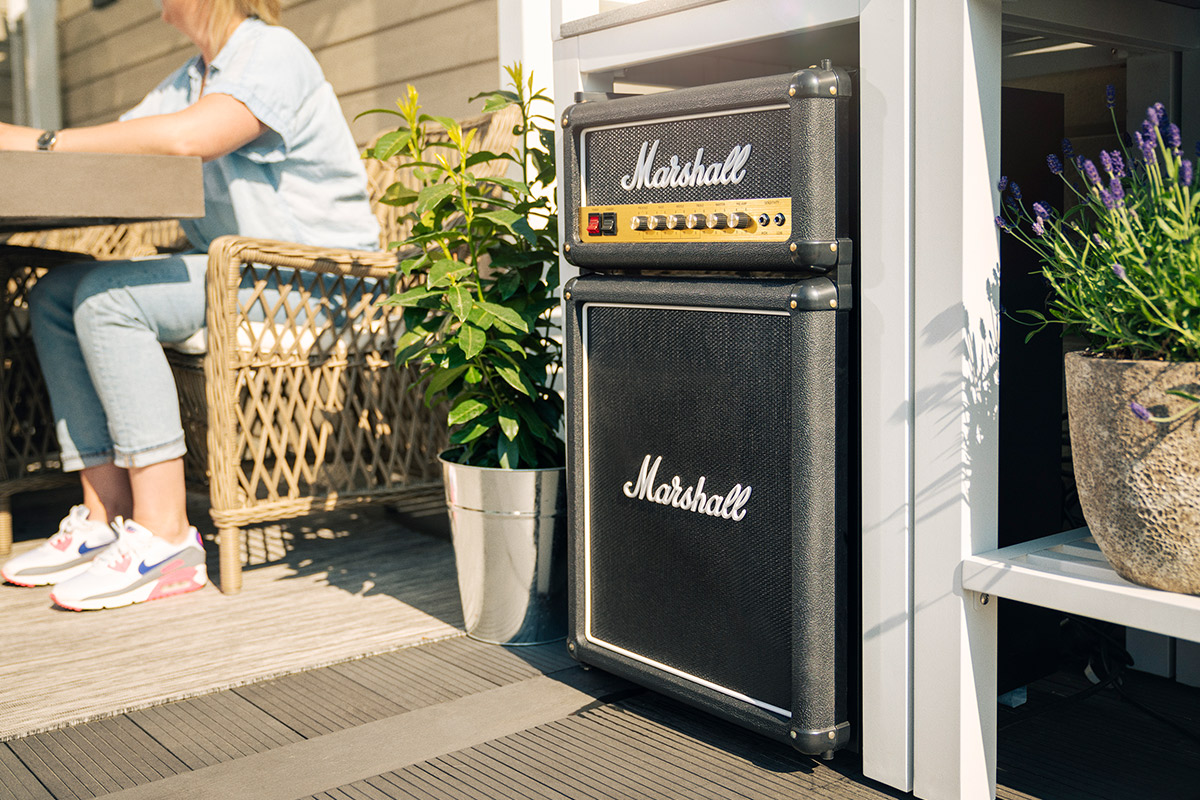 De stijlvolle en iconische Marshall koelkast geeft je kamer een uniek tintje. Plaats hem bij de barbecue, op kantoor of op de werkplek of waarom niet bij de tv of bank? Het iconische Marshall-design is direct herkenbaar en geeft ongeacht de omgeving een stoere indruk. Laat uw Marshall-koelkast zijn plaats innemen, hij verdient het.